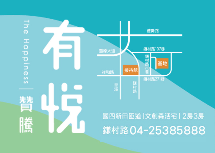 產品特色 | 大道匯聚 雙城生活 跨界菁英行旅 北歐語彙 綠意共築 精品渡假美學 精緻規劃 生活為本 動線採光俱佳 豐原商圈 | 2-3房 | 19~32坪 | 菁英文創生活宅 接待會館 | 台中市北屯區松安街198號1F 連絡電話 | 04-2538-5888 優雅入席 | https://authmas.com.tw/have-Joy/